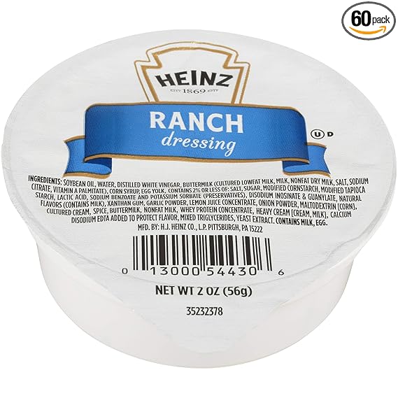 Amazon Com Heinz Ranch Dressing Single Serve Dipping Sauce 60 Ct Pack 2 Oz Dipping Cups Everything Else